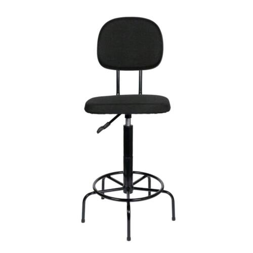 Cadeira secretaria caixa alta com L duplo com base fixa para recepção mercado balcão tecido preto Cadeira secretaria caixa alta - - apoio para os pés - estrela de ferro - espuma injetada - madeira reflorestada - bordas em pvc flexivel - revestido em tecido j. Serrano anti-chama - prolongador de altura