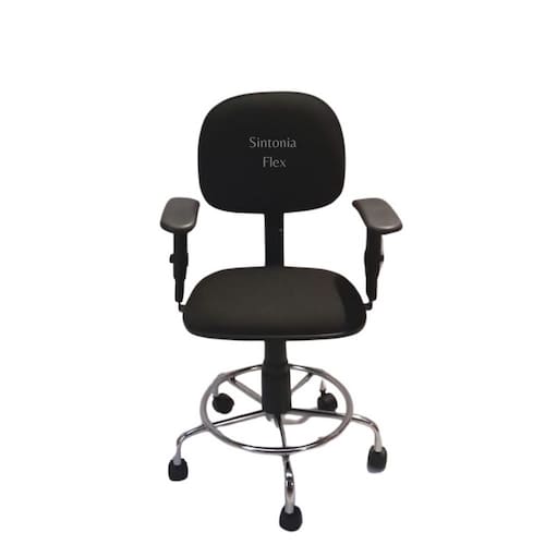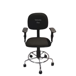 Cadeira secretaria giratoria pistão a gás com base cromada tecido preto Cadeira de escritório secretária - regulagem de altura a gás - espuma injetada - revestida em tecido j.Serrano anti-chama - bordas em pvc flexivel - pintura eletrostatica - base cromada - apoio para oa pés Marca: Sintonia Flex