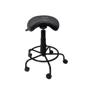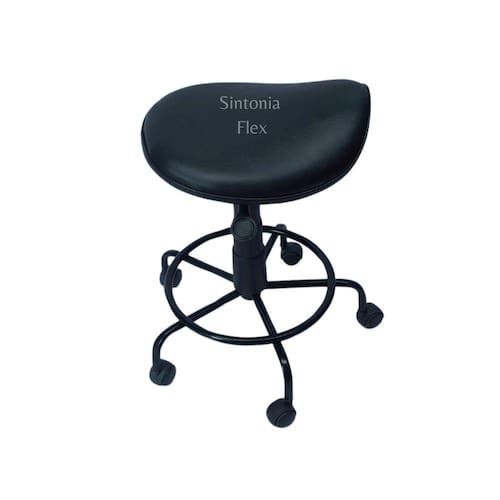 Cadeira sela - regulagem de altura a gás - espuma injetada , revestida em corano cipatex - bordas em pvc flexivel - apoio para os pés - pintura eletrostática - com rodízios. altura do chão ao assento máximo 53cm mínimo 43cm Marca: Sintonia Flex