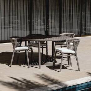 Nossos móveis de jardim são uma combinação perfeita de modernidade e funcionalidade, apresentando estruturas de linhas simples e tramas lineares e minimalistas em fita náutica. Este acabamento, manualmente elaborado por artesãos, acrescenta uma sofisticação incomparável a cada peça, tornando-as únicas.