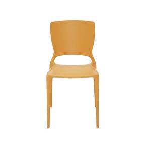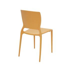 A Cadeira Sofia Encosto Fechado Laranja Tramontina é feita de polipropileno e fibra de vidro.
