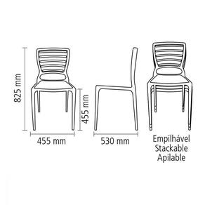 Se você deseja transformar a sua casa e escritório com cadeiras de alta qualidade, que além de conforto ofereçam uma beleza única para o ambiente, a escolha certa é a Cadeira Tramontina Sofia Marrom sem Braços Encosto Vazado Horizontal em Polipropileno e Fibra de Vidro da linha Summa. Projetada com uma proposta diferente, ela é robusta, bonita e moderna, agregando na decoração. Além disso, ela conta com diversas cores para você brincar com a criatividade e deixar o ambiente ainda mais descontraído. São cinco modelos dela: Sofia encosto fechado, Sofia encosto vazado vertical, Sofia encosto vazado horizontal, Sofia com braço e encosto vazado horizontal, e por fim, Sofia com braço e encosto fechado. Para garantir durabilidade e evitar acidentes, não suba no assento, evite jogar-se sobre a cadeira ou apoiar-se somente nas pernas traseiras. Além de evitar longa exposição ao sol. Ela é resistente a uma carga estática de até 182 kg.