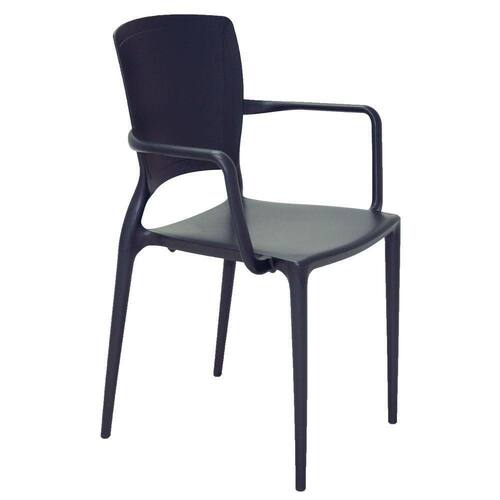 Com a Cadeira Tramontina Sofia Grafite com Braços Encosto Fechado em Polipropileno e Fibra de Vidro da linha Summa qualquer ambiente ficará ainda mais encantador, amigável e aconchegante. A Sofia conta com um design diferenciado, robusto e extremamente moderno, com linhas imponentes e que prometem fazer a diferença na sua casa ou escritório. Indicada para ambientes internos, ela conta com cinco modelos diferentes para você inovar e diversificar sua decoração: Sofia encosto fechado, Sofia encosto vazado vertical, Sofia encosto vazado horizontal, Sofia com braços e encosto vazado horizontal e, por fim, Sofia com braços e encosto fechado. E para garantir que a sua beleza seja conservada, é aconselhável não subir no assento, jogar-se sobre a cadeira ou apoiar-se somente nas duas pernas traseiras. Evitar longa exposição ao sol. Resiste a uma carga estática de até 182 kg.