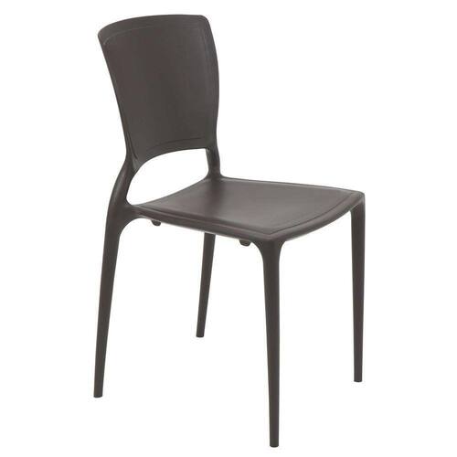 A Cadeira Tramontina Sofia Marrom sem Braços com Encosto Fechado em Polipropileno e Fibra de Vidro da linha Summa trará uma proposta diferente para qualquer ambiente, pois é robusta, bonita e moderna, tornando-se o grande destaque. Uma peça ideal para uso interno, seja na sua casa ou escritório. São cinco modelos dela: Sofia encosto fechado, Sofia encosto vazado vertical, Sofia encosto vazado horizontal, Sofia com braço e encosto vazado horizontal, e por fim, Sofia com braço e encosto fechado. Para garantir durabilidade e evitar acidentes, não suba no assento, evite jogar-se sobre a cadeira ou apoiar-se somente nas pernas traseiras. Além de evitar longa exposição ao sol. Ela é resistente a uma carga estática de até 182 kg, sendo certificada pelo Inmetro.