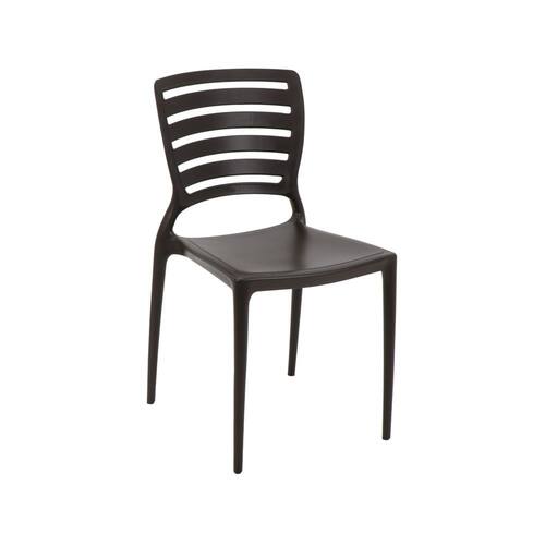 A Cadeira Sofia Marrom Tramontina é feita de polipropileno e fibra de vidro.