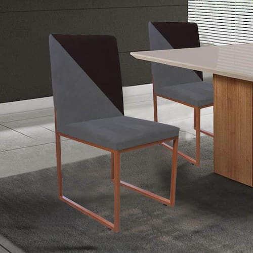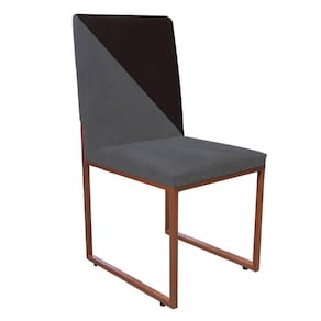 Cadeira Office Stan Duo Sala De Jantar Industrial Ferro Bronze Suede Cinza E Marrom - Ahazzo Móveis Cor Marrom