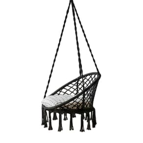 E para aqueles que não querem furar teto ou pregar um gancho, a rede cadeira proporciona a vantagem de prendê-la com cordas. Deixe o ambiente a cada momento do dia mais vivo e moderno; as sombras que se formam nas paredes com a cadeira suspensa, do amanhecer ao entardecer, são fantásticas.