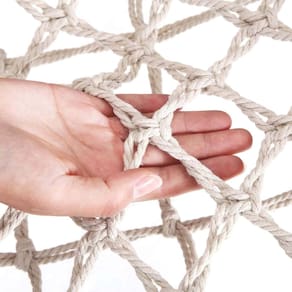 E para aqueles que não querem furar teto, ou pregar um gancho, a rede cadeira proporciona uma vantagem de prendê-la com cordas. Deixe o ambiente a cada momento do dia mais vivo e moderno, as sombras que se fazem nas paredes com a cadeira suspensa no amanhecer ao entardecer é fantástico.