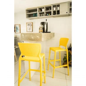 Cadeira Tramontina Safira Alta Bar Em Fibra De Vidro Amarelo Renove o seu ambiente com a Cadeira Tramontina Safira Alta Bar em Polipropileno e Fibra de Vidro Amarela. Desenvolvida para a linha Summa, a cadeira Safira traz em seu design um ar descontraído e inovador, sendo a melhor escolha para quem deseja colocar um ponto de criatividade no ambiente. Recomendações de Uso: - Para limpeza aconselha-se apenas um pano umedecido com água. Informações Adicionais: