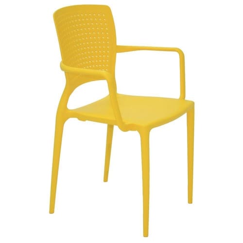 Seu ambiente ficará ainda mais criativo e inovador com a Cadeira Tramontina Safira Amarela em Polipropileno e Fibra de Vidro com Braços da linha Summa. Uma peça projetada com um design diferenciado, oferecendo para o seu dia a dia, além de conforto, uma forma robusta, bonita e moderna. Ideal para compor a decoração da sua casa ou escritório. E para que você possa compor uma espaço ainda mais convidativo, a Safira está disponível em duas versões: Safira com braços e Safira sem braços. E para garantir que a sua beleza seja preservada por mais tempo, é aconselhável não subir no assento, jogar-se sobre a cadeira ou apoiar-se somente nas duas pernas traseiras. A Safira é ideal para ambientes internos. Deve-se evitar a exposição prolongada ao sol. A cadeira é resistente a uma carga estática de até 182 kg.