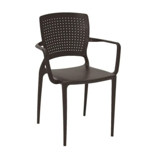 Cadeira Tramontina Safira Com Braços Marrom A Cadeira Tramontina Safira Marrom em Polipropileno e Fibra de Vidro com Braços da linha Summa vai, além de resolver todas as necessidades do dono da casa, receber seus visitantes com todo o conforto. Recomendações de Uso: - Aconselha-se a limpar a cadeira com pano macio e umedecido apenas com água.- Não subir no assento, evite jogar-se sobre a cadeira ou apoiar-se somente nas duas pernas traseiras: evite acidentes.- Evitar longa exposição ao sol. Informações Adicionais: