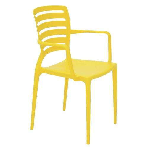 O amarelo é a cor da criatividade e sempre traz uma leveza e alegria para os ambientes. E com a Cadeira Tramontina Sofia Amarela com Braços Encosto Vazado Horizontal em Polipropileno e Fibra de Vidro da linha Summa você poderá dar esse toque na sua casa ou escritório. Uma cadeira que conta com formas modernas, é robusta e deixa qualquer cantinho cheio de vida. Além disso, oferece muito conforto. E para deixar seus dias ainda mais alegres, a Sofia conta com cinco modelos para você diversificar: Sofia encosto fechado, Sofia encosto vazado vertical, Sofia encosto vazado horizontal, Sofia com braços e encosto vazado horizontal e, por fim, Sofia com braços e encosto fechado. A cadeira Sofia Encosto Vazado é indicada para ambientes internos. Para evitar acidentes e manter suas características intactas, evite subir no assento, jogar-se sobre a cadeira ou apoiar-se somente nas duas pernas traseiras. É indicado evitar longa exposição ao sol. Resiste a uma carga estática de até 182 kg.