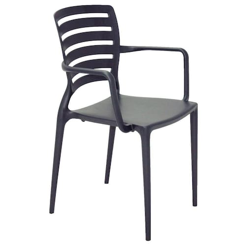 Para deixar o seu ambiente ainda mais encantador, confortável e amigável a escolha certa é a Cadeira Tramontina Sofia Grafite com Braços Encosto Vazado Horizontal em Polipropileno e Fibra de Vidro da linha Summa. Projetada para oferecer beleza, com um design robusto e moderno, ela se destaca em qualquer espaço, seja ele residencial ou comercial. Além disso, a Sofia oferece cinco modelos para você inovar e criar decorações ainda mais incríveis, são eles: Sofia encosto fechado, Sofia encosto vazado vertical, Sofia encosto vazado horizontal, Sofia com braços e encosto vazado horizontal e, por fim, Sofia com braços e encosto fechado. A cadeira Sofia Encosto Vazado é indicada para ambientes internos. Para evitar acidentes e manter suas características intactas, evite subir no assento, jogar-se sobre a cadeira ou apoiar-se somente nas duas pernas traseiras. É indicado evitar longa exposição ao sol. Resiste a uma carga estática de até 182 kg.