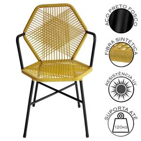 Cadeira Tropicália Aço Fibra Sintética Gourmet Acesse Móveis Amarelo A Cadeira Tropicalia combina design sofisticado e resistencia para compor ambientes com estilo e conforto. Produzida em aco com pintura eletrostatica e fibra sintetica trancada a mao, e ideal para areas gourmet, varandas cobertas, ediculas e espacos de lazer, oferecendo leveza, praticidade e visual elegante para o seu ambiente. Alem do visual refinado, a estrutura metalica proporciona alta durabilidade, enquanto a fibra sintetica e facil de limpar e mantem o conforto mesmo em dias quentes.