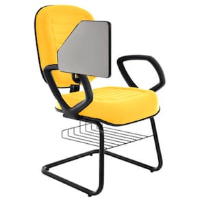Cadeira Universitária Diretor com prancheta escamoteável e porta livros para Auditório, Escolas e Faculdades Amarelo Linha Blenda – Cor: Amarelo Cor: Amarelo - Marca: Design Office Móveis - Modelo: Cadeira Universitária Diretor para Escolas e Faculdades com prancheta escamoteável e porta livros