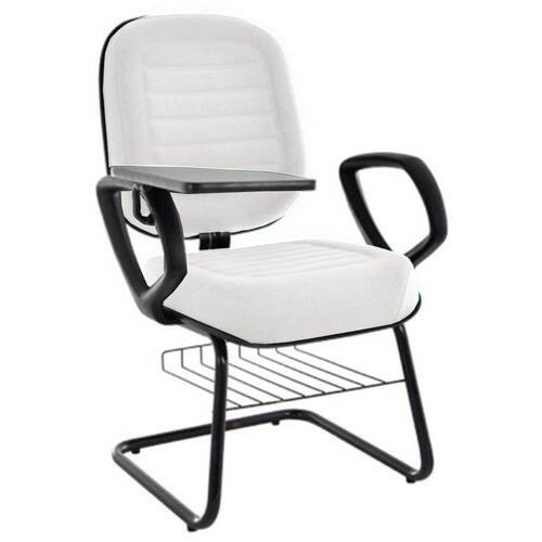 Cadeira Universitária Diretor com prancheta escamoteável e porta livros para Auditório, Escolas e Faculdades Branco Linha Blenda – Cor: Branco Cor: Branco - Marca: Design Office Móveis - Modelo: Cadeira Universitária Diretor para Escolas e Faculdades com prancheta escamoteável e porta livros