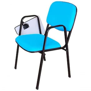 Peso da cadeira: 6,40kg - Empilhável com até 7 cadeiras sem a prancheta