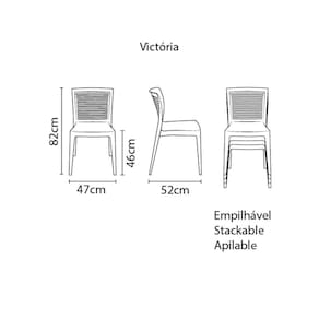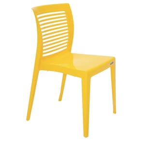 Versátil e funcional, a linha de cadeiras Victória é um coringa na decoração de sua casa. Disponível em versões com encosto aberto ou fechado, com ou sem braço, combina com qualquer ambiente. A Cadeira Tramontina Victória Amarela sem Braços com Encosto Vazado Horizontal em Polipropileno é leve, empilhável, resistente e com design diferenciado. Para evitar acidentes, não apoie-se nas duas pernas traseiras ou suba no acento. Submetida a rigorosos testes de qualidade, a cadeira resiste a uma carga estática de até 182 kg. É certificada pelo Inmetro.