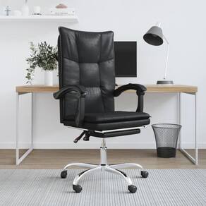 Cadeira vidaXL, cadeira de mesa reclinável com rodas, cadeira reclinável giratória de 360 graus para sala de estar e escritório, estilo moderno, couro sintético preto
