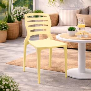Com design moderno e linhas elegantes, sua tonalidade Amarelo Primavera proporciona um visual alegre, moderno e sofisticado, trazendo luminosidade ao ambiente e facilitando a harmonização com diferentes estilos de decoração, do clássico ao contemporâneo. É uma cadeira versátil, perfeita para salas de jantar, cozinhas, varandas, áreas gourmet, restaurantes, cafés, espaços corporativos e eventos.