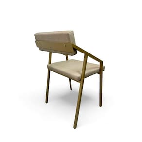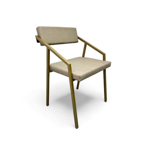 Apresentando a Cadeira Prisma Industrial Estofada da Casa Decor Lis, onde a elegância do design industrial se encontra com o máximo conforto.
