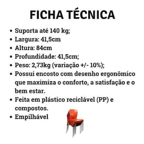 Cadeiras Bistrô Plástico Pés Alumínio Indicado para USO COMERCIAL e USO RESIDENCIAL #USO COMERCIAL: +Clubes; +Hotéis; +Escolas; +Auditórios; +Restaurantes. #USO RESIDENCIAL: +Áreas Internas: salas, copas e cozinhas; +Áreas Externas: Varandas e terraços.