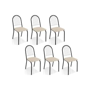 Abaixo segue os produtos do KIT: Cadeiras de Cozinha Noruega C077 Kit 6 Un Preto Fosco/Courano Nude - Kappesberg
