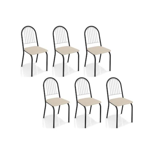 Cadeiras de Cozinha Noruega C077 Kit 6 Un Preto Fosco/Courano Nude - Kappesberg