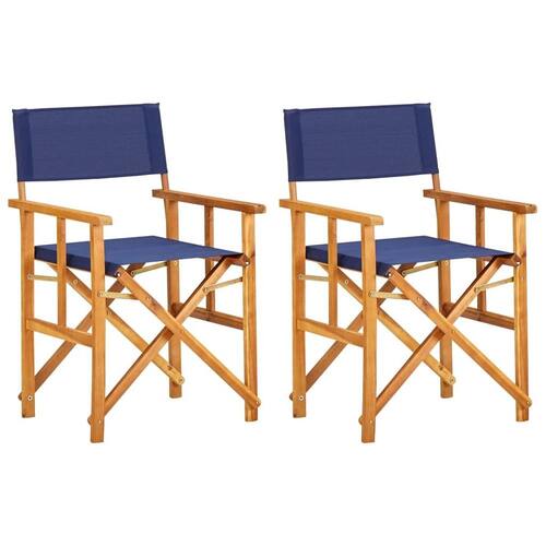 Cadeiras dobráveis vidaXL para diretores, 2 peças, cadeiras de acampamento ao ar livre, construção robusta em madeira maciça de acácia, assentos e encosto confortáveis de poliéster, azul natural