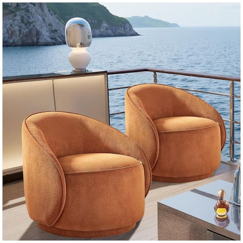 O conjunto de cadeiras giratórias Arcrinte é composto por duas poltronas tipo barrel em tecido peluciado na cor curry, com base giratória de 360° e estrutura interna dimensionada para uso em salas, quartos e áreas de leitura. O assento acolchoado em espuma, encosto contínuo e braços arredondados integrados oferecem apoio ao tronco e aos braços em um formato compacto de aproximadamente 84 cm de profundidade, 76 cm de largura e 71 cm de altura. ? Cada unidade suporta até cerca de 159 kg, indicada para uso interno sobre pisos rígidos, com almofada de assento inclusa e construção pensada para conforto em atividades de leitura, descanso e maquiagem. O design moderno em tom curry facilita a composição com diferentes elementos de decoração, funcionando como ponto de destaque ou complemento em ambientes residenciais. ? Ficha Técnica: