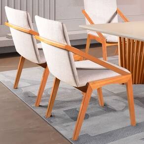 Cadeiras Madeira Maciça Estofada com Braço - Lírio - Harmonia Salas Essa elegante cadeira de jantar combina sofisticação e conforto em um design atemporal. Fabricada em madeira maciça de alta qualidade, possui estrutura robusta e acabamento refinado em tom natural, valorizando a beleza da madeira. O encosto e assento estofados com espuma D-23 garantem o conforto e aconchego para você, seus amigos e familia trazendo uma experiência agradável durante as refeições. Ideal para compor salas de jantar sofisticadas, áreas gourmet ou espaços de convivência, essa cadeira une durabilidade, ergonomia e um design versátil que harmoniza com diversos estilos de decoração. Devido à fabricação manual, o que compete ao produto um acabamento impecável, o tempo solicitado é um pouco maior do que o convencional por isso pedimos um prazo um pouco maior do que a maioria dos produtos. No entanto, garantimos que o resultado vale a pena. Faz parte do anúncio: 2 Cadeiras Madeira Maciça Estofada com Braço - Lírio - Harmonia Salas Obs.: Objetos de decoração não acompanham o produto. Particularidades da Cadeira: Características: - Madeira Maciça de Eucalipto seca e tratada em estufa; - Madeira imunizada; - Espuma D-23; - Estrutura reforçada; - Ecologicamente correta; - Peso suportado recomendado 150kg. Dimensões: Altura: 86 centímetros Altura do assento: 45 centímetros Largura: 49 centímetros Profundidade: 52 centímetros Informações Importantes: - Produtos podem apresentar diferenças de tonalidades entre a foto na tela e o produto real, devido a calibração de cor de tela. - Limpar com flanela ou pano macio. Não utilizar álcool. Não utilizar produtos abrasivos ou corrosivos - Nós prezamos pela qualidade da entrega em primeiro lugar, trabalhamos com transportadoras altamente selecionadas e os melhores materiais de embalagem. - As cadeiras vão 100% montadas nas caixas e embaladas. Não necessita da montagem de um profissional. - Objetos de decoração não incluso. - Certifique-se de que o produto caiba em elevadores e vãos de escadas, não fazemos içamentos ou desmontagens de produtos. Quaisquer despesas deste tipo ficam a cargo do cliente - Garantia de 3 meses contra defeitos de fabricação. Marca: Harmonia Salas