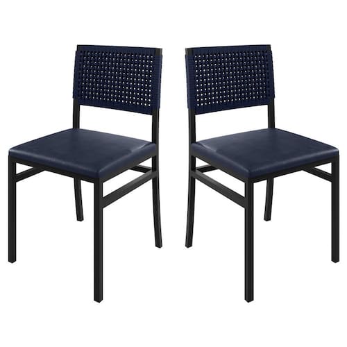 Particularidades da Cadeira Características da cadeira - Estrutura metálica em metalon; - Encosto em corda náutica; - Assento em MDF de 12mm com espuma D-23; - Design moderno, sofisticado e diferenciado; - Suporta ate 120kg;