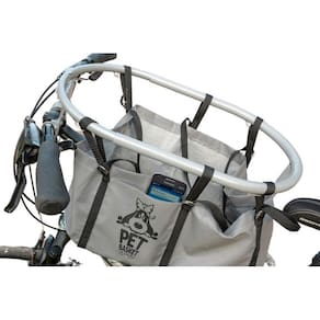 Cadeirinha Ou Cesto Para Transporte De Cães Em Bicicleta Cesto para transporte de cães marca Pet-Basket. Único que não gira com o guidão, suporta até 25 kg e se adapta a todo tipo de bicicleta. Tamanho: comprimento de 45 a 60cm de acordo com a distância entre o guidão e o assento, largura 28cm, altura regulável entre 15 e 28cm conforme o tamanho do cão. O pivô sobre o guidão impede que o giro do guidão assuste o animal e o que o movimento do pet desequilibre o ciclista. Metais zincados. Tecido resitente ao sol e à chuva, lavável na cor bege. Distribuição do peso no centro da bicicleta. Ajustável a todo tipo e tamanho de bicicleta adulta. Leve, pesa apenas 1,8kg. Segurança e conforto para o pet e para o ciclista. Acompanha a chave para a instalação. Manual de montagem no verso da embalagem Marca: Pet-Basket Ean: 2960001873394