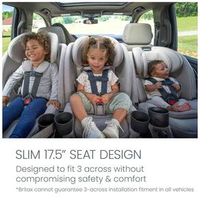 A cadeirinha de carro all-in-one One4Life Slim acompanha seu filho desde o nascimento até a infância com a segurança Britax de confiança, instalação ClickTight e design compacto SpaceSaverTM. Como um assento conversível e booster em um só, ela cresce com seu filho por 10 anos. Começa virada para trás com capacidade estendida de até 22,7 kg, permitindo que seu filho viaje nessa posição por mais tempo. Facilmente convertida para o modo de criança virada para frente de até 29,5 kg e modo de booster com encosto alto de até 54,4 kg, quando seu filho estiver pronto. Com um exterior compacto e interior espaçoso, o assento de 44,5 cm foi projetado para caber 3 de lado sem comprometer a segurança e o conforto. O ClickTight ajuda na instalação com confiança, toda vez. A base e a concha são fáceis de limpar para uma limpeza sem complicações. A capa da cadeirinha é segura para lavar e secar à máquina, e naturalmente retardante de chamas sem produtos químicos adicionais. One4Life Slim apresenta uma estrutura de aço de alta resistência, uma zona de deformação SafeCellR e um tensor em forma de V. Conforme seu filho cresce, é possível ajustar facilmente o arnês de 15 posições e o apoio para cabeça sem precisar ajustar a altura. Com canais de resfriamento, acolchoamento premium, três inserções para recém-nascidos e apoios de braço integrados, seu filho vai adorar cada passeio. A Britax não pode garantir a instalação de 3 cadeirinhas lado a lado em todos os veículos. Cadeirinha All-in-One One4LifeR Slim é um assento conversível e booster em um só! Pode ser facilmente convertida de um assento de criança de frente e traseira de 2,3 a 25 kg para um assento de frente de 13,6 a 29,5 kg e um booster com encosto alto de 18,1 a 54,4 kg. Instalação ClickTightR Instale com confiança em 3 etapas fáceis: aperte para abrir, passe a fivela, clique para fechar! Design SpaceSaverTM Exterior compacto, interior espaçoso! O assento de 44,5 cm foi projetado para caber 3 de lado sem comprometer a segurança Britax de confiança e o conforto premium. Capa de Cadeirinha Premium Apresenta um tecido de malha macio com detalhes em mélange tecidos feitos de poliéster reciclado a capa pode ser lavada e seca na máquina e é naturalmente retardante de chamas sem produtos químicos adicionais. Segurança Britax de Confiança Possui um tensor patenteado em forma de V, tecnologia SafeCellR, uma estrutura de aço de alta resistência e duas camadas de gerenciamento de energia Passeios Confortáveis Essa cadeirinha compacta inclui almofadas de conforto macias, canais de resfriamento embutidos, três inserções para recém-nascidos, acolchoamento macio e um apoio para cabeça sem etiquetas Fácil de Ajustar O arnês de 15 posições e o apoio para cabeça podem ser ajustados juntos facilmente com uma mão, e o reclinador de 9 posições possui um indicador de fácil leitura para ajudar a encontrar o ângulo correto para o seu veículo Porta-Copos Deslizantes Os porta-copos podem ir à máquina de lavar louça, deslizam facilmente para uma limpeza conveniente e encaixam de volta no lugar de forma segura durante os passeios Guias de Cinto Coloridos e Acessíveis Tornam fácil passar o cinto de segurança pelo caminho correto para cada modo da cadeirinha Limpeza Sem Complicações Espaço extra entre a concha e a base facilita a limpeza por baixo da cadeirinha e com poucos sulcos na área do assento e da base, você pode limpá-la sem complicações