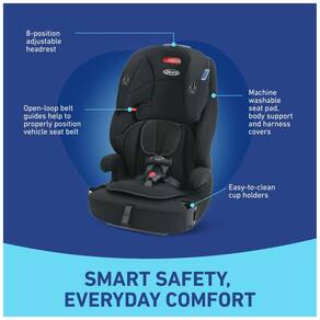 A Cadeirinha de Carro Graco Tranzitions 3 em 1 foi projetada para acompanhar o crescimento da criança e te acompanhar em todas as jornadas, do carro à carona e além. Esta cadeirinha leve transita perfeitamente de booster com arnês de 13 a 25 kg, a booster de encosto alto de 18,1 a 45,3 kg, e sem encosto de 18,1 a 45,3 kg. Possui o Sistema de Arnês Simply Safe Adjust, que ajusta o arnês e o apoio de cabeça em 9 posições de altura, sem a necessidade de rosquear novamente. Conta com dois porta-copos giratórios para manter a criança feliz, capa de assento lavável na máquina e protetores de arnês. Para continuar atendendo aos padrões da indústria, aumentamos o peso mínimo de 13,6 para 18,1 kg. O booster 3 em 1 ajuda a proteger seu filho, desde a infância até a juventude, crescendo junto com a criança de booster voltado para frente de 13 a 25 kg a booster com encosto alto de 18,1 a 45,3 kg e sem encosto de 18,1 a 45,3 kg. O Sistema de Arnês Simply Safe Adjust sem a necessidade de rosquear permite ajustar o apoio de cabeça e o arnês juntos em um único movimento. O assento portátil e leve é ideal para pais ocupados e ativos. O apoio de cabeça ajustável com uma mão em 9 posições cresce com seu filho.
