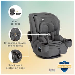 A Cadeirinha de Carro 4 em 1 Joie Saffron SI cresce com seu filho, passando de uma cadeirinha de bebê virada para trás de aproximadamente 2 a 20 kg, para uma cadeirinha para crianças de frente de aproximadamente 14 a 29,5 kg, um assento de elevação com encosto alto de aproximadamente 18 a 45 kg e finalmente uma transição fácil com uma mão para um assento de elevação sem encosto de aproximadamente 18 a 54 kg, oferecendo múltiplos estágios numa única compra. Testada conforme os mais recentes padrões de segurança e proteção contra impactos laterais para absorver e dispersar forças em caso de acidente. Com o ajuste GrowTogether sem reenfiamento do cinto de segurança e do encosto de cabeça em 10 posições, você pode ajustar a altura do suporte de cabeça e do cinto de segurança com uma mão, facilitando os imprevistos surtos de crescimento. Com um sistema LATCH de fácil utilização para instalação de frente para trás ou anexos inferiores de ancoragem de botão de pressão para instalação de frente para trás, a Saffron SI oferece dois locais de armazenamento para quando o anexo inferior de ancoragem não estiver em uso. Com 3 opções de reclínio, seu filho permanece confortável, seja recém-nascido ou criança pequena, ajudando a encontrar o ângulo perfeito para segurança e conforto em qualquer veículo.