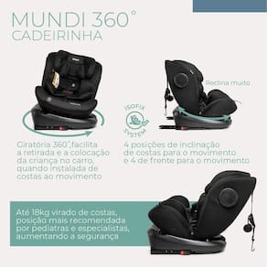 Rotação 360: Permite girar a cadeira para a porta, facilitando a colocação e retirada do seu filho sem esforço e com segurança.