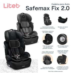 Marca: Litet Modelo: Cadeirinha Infantil para carro Safemax Fix 2.0 Isofix 9-36 Kg Preta Litet - BB459 Cor: Preto Ideal para: Grupos I, II e III Peso Recomendado: 9 a 36kgs Composicao do material: Partes Plasticas - HDPE; Tecido - Poliester; Espuma - PU Dimensoes do produto -LxAxC-: 45x60x52cm Peso do produto: 6500.0g Certificado Inmetro: 001874/2017 Garantia: 1 ano