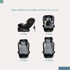 Com rotação 360, é super prática, tem instalação ISOFIX, uma super inclinação para os recém-nascidos e longo tempo de uso