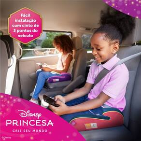 - Tema: Disney Princesas - Para criancas de 15 a 36 kg - Auxilia no posicionamento correto do cinto de seguranca - Assento acolchoado e confortavel - Design encantador com personagens Disney - Instalacao facil e rapida - Ideal para uso diario e viagens