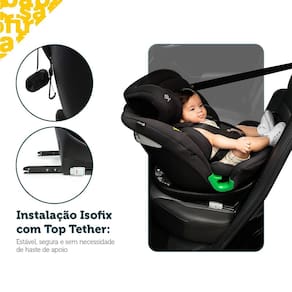 Características: Rotação 360 para colocar e retirar a criança com facilidade Conformidade i-Size: 40 a 150 cm, até 12 anos Instalação Isofix + Top Tether: segura e estável Proteção lateral SafeSide: absorve impactos laterais Encosto de cabeça ajustável e redutor acolchoado removível Múltiplos níveis de recline para maior conforto Cinto de 5 pontos com ajuste seguro