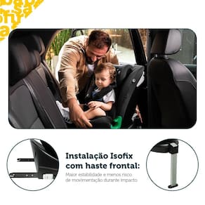 Especificações Técnicas: Norma ABNT: NBR 14400:2020 Certificação i-Size: de 40 a 150 cm (aproximadamente do nascimento até 12 anos) Instalação: sistema Isofix + haste frontal Rotação: 360 em todas as faixas de uso Reclinável: múltiplas posições de inclinação Redutor: acolchoado e removível para recém-nascidos Encosto de cabeça: ajustável com tecnologia SafeSide Cinto de segurança: 5 pontos com protetores acolchoados, ajustável em altura e largura Material/Composição: Tecido: poliéster, PU e algodão | Estrutura: aço, alumínio, PP e EPP Dimensões (A x L x P): 55 x 45,5 x 54 cm Peso do produto: 9,5 kg Conteúdo da embalagem: 1 cadeirinha, 1 manual de instruções e 1 par de guias de instalação Garantia do fornecedor: 12 meses Imagens meramente ilustrativas.