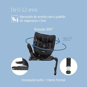 Máximo conforto e segurança com visor LED que indica quando a cadeira está "pronta para sair". Possui giro 360 em todas as idades e proteção contra impactos laterais.