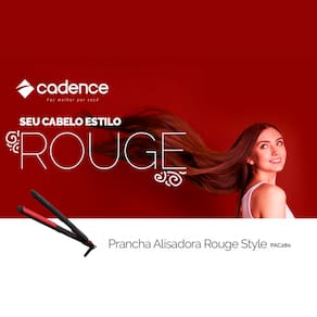 Praticidade, fácil manuseio, além de cabelos lisos e macios? Chegou a Prancha Alisadora Cadence Rouge Style! Com um design de qualidade Cadence, ela proporciona alta performance ao alisar os seus cabelos. Compacta, leve e muito estilosa! Compacto e parceiro para viagens. Ele tem dimensões de 300 x 31 x 30 mm e ainda com 1,75m de comprimento de cabo de Força, para tornar mais prático ainda. Bivolt automático! Revestimento Cerâmico que mantém o calor por mais tempo, para um deslizar suave e preciso, ideal para um liso perfeito e duradouro com maior conforto. Íons Turmalina que eliminam a eletrecidade estática dos fios e neutralizam o efeito frizz que proporcionam maciez e brilho aos cabelos.