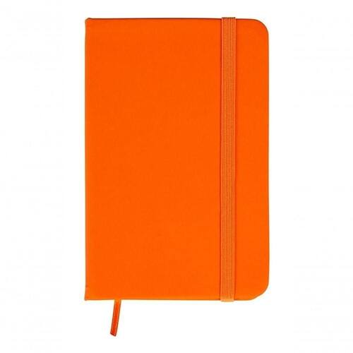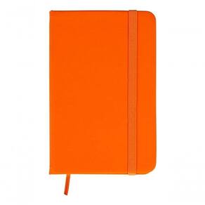 Caderno de anotações emborrachada com elástico para lacre e marcador de página em cetim. Capa produzida em sistema emborrachado. Contém aproximadamente 80 folhas amareladas com pauta.