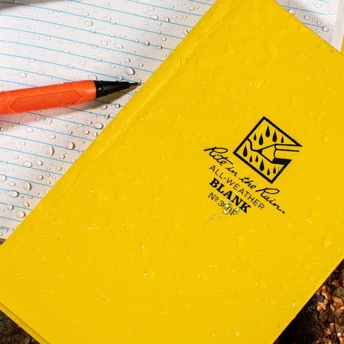 A Caderneta de Campo Métrica Impermeável Rite in the Rain 360F foi desenvolvida para profissionais que precisam de confiabilidade absoluta em qualquer condição climática. Fabricada com o tradicional papel impermeável Rite in the Rain, suas páginas recebem um revestimento especial à base de cera, que as torna totalmente resistentes à água, neve, lama e umidade — sem perder a qualidade da escrita.