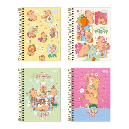 A Caderneta Espiral Capa Dura 1/8 Capyclub 80 Folhas possui capa dura com a parte interna decorada, folhas pautadas decoradas e espiral colorido. Ideal para o dia a dia.