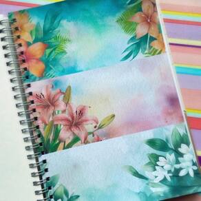Tamanho: A5 21cm x 14,8cm 60 folhas Capa dura Artesanal Material: Papel Adesivo 120g Elástico para fechamento Espiral Wire-O Marca: Não Informado