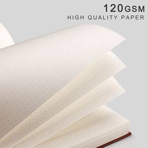 O diário de grade pontilhada AHGXG A5 é um companheiro de papel flexível para anotações e ideias do dia a dia. O design simples e o estilo atemporal tornam este caderno perfeito para diário, anotações, desenho, escrever pensamentos e ideias em aulas ou reuniões. Diários de alta qualidade são presentes atenciosos para amigos e familiares. Características: Tamanho grande A5: cada caderno de diário pontilhado vem com tamanho A5 de 14,6 cm x 21,3 cm, o que lhe dará espaço suficiente para escrever. Capa macia de couro PU durável: a capa macia durável ajudará a proteger as páginas internas e fornecerá uma superfície de escrita confortável. Páginas numeradas: por caderno tem 80 páginas (160 folhas) e cada uma com numeração de página útil. Design de bolsos internos: o bolso traseiro grande é conveniente para guardar recibos, cartões de visita, adesivos, lembranças e notas de aula, etc. Marcador de página conveniente: Existem dois marcadores neste diário pontilhado para manter seu lugar Design de conteúdo humanizado: o conteúdo do guia humano pode ajudá-lo a fazer um plano mais detalhado dia após dia, mês a mês. Papel creme off-white: o papel creme esbranquiçado protegerá seus olhos de luzes fortes e tensão de visualização. Uso multiuso: perfeito como diários de viagem, cadernos de negócios, cadernos de cursos universitários, diário de anotações, etc. Especificações Caderno Dot Grid de 14,6 cm x 21,3 cm 160 páginas no total. Papel grosso de 120 g/m² 3 páginas de conteúdo para indexação Páginas numeradas. Faixa elástica com fecho 2 marcadores de fita 1 bolso traseiro expansível. Incluído na embalagem: Pacote com 2 cadernos com grade de pontos com estêncil de diário - Pacote com 2 diários pontilhados: diário de grade de bala pontilhada AHGXG com tamanho médio A5 14,6 cm x 21,3 cm, 80 folhas/160 páginas numeradas por pacote. Total de 160 folhas/320 páginas para fornecer amplo espaço para escrever - Papel grosso de 120 g/m2: o caderno quadriculado adota papel marfim espesso sem ácido de 120 g/m², as páginas são grossas o suficiente para usar sua caneta, lápis ou marcador favorito, evitando que a tinta vaze e fantasmas, garantindo uma experiência de escrita suave e agradável - Capa macia de couro PU: capa macia durável e resistente à água protege o notebook do desgaste. A encadernação de linha resistente combina com a capa macia deixa o caderno 180° plano, garantindo fácil escrita e leitura para usuários destros e canhotos - Design de diário de grade pontilhada: inclui 160 páginas numeradas e 3 páginas de conteúdo para facilitar a navegação e organização. Possui um suporte de caneta, um elástico, 2 marcadores para referência rápida da página, um bolso interno para diversos e notas adesivas para lembretes adicionais - Adequado para: O diário de papel pontilhado perfeito para diário com balas. Ideal como um diário de balas, diários de viagem, agenda semanal anual, cadernos de cursos de faculdade/escola, diário de receitas, etc. Muito perfeito como um presente atencioso para amigos e familiares