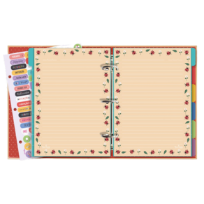 Caderno com ferragem 3 argolas, capa dura Joaninha